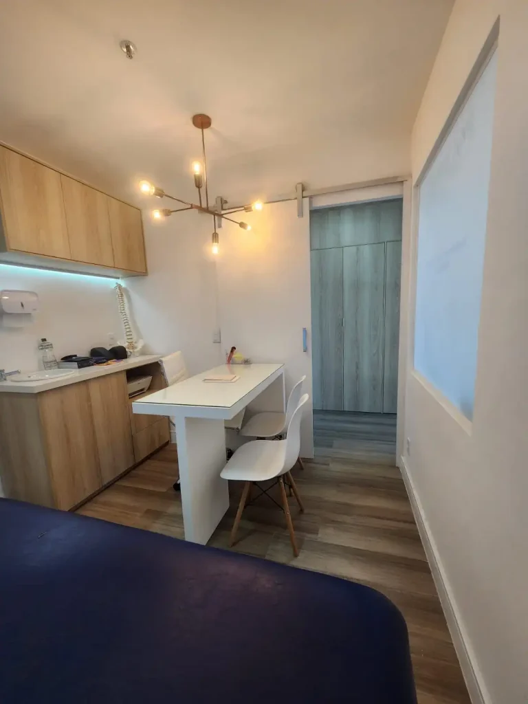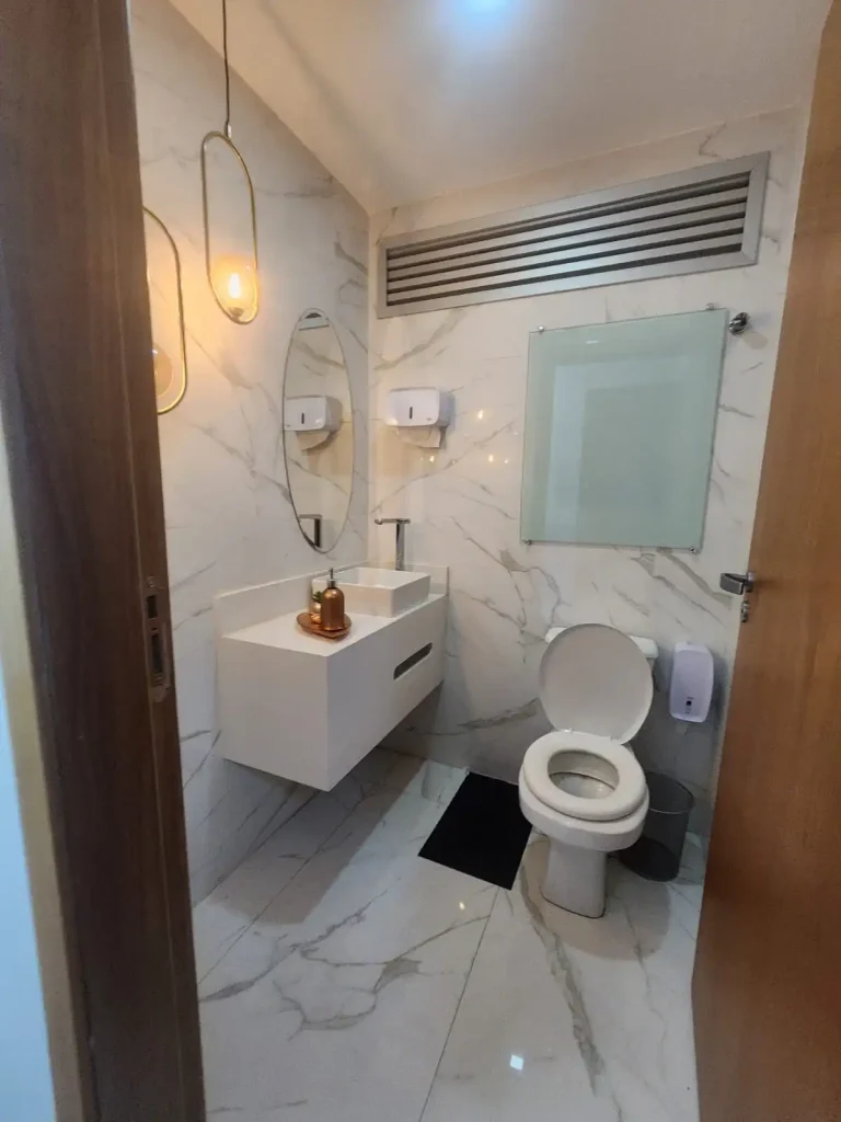 Ambientes planejados: Recepção aconchegante e funcional; Sala para atividades coletivas; Consultório individual; Espaço de expurgo, ideal para uso clínico ou estético;